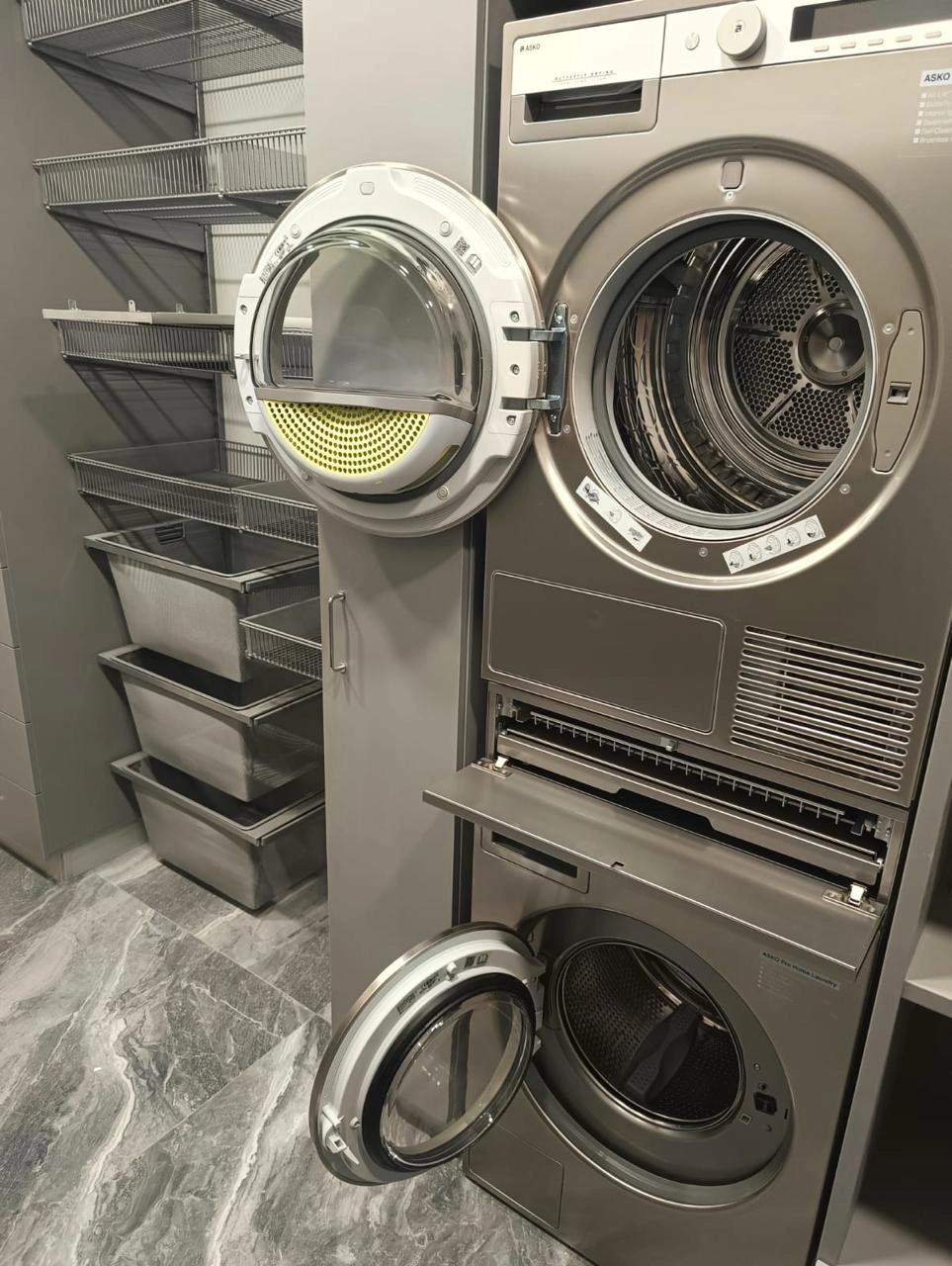 Техника легко монтируется в колонну со стиралками Asko. Также ее можно установить отдельно. Имеются ножки, которые регулируются по высоте. Устройства прочно располагаются на любом напольном покрытии.